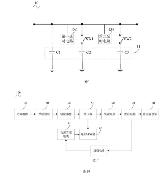 電容電路,電容電路的電容值可調(diào);和與電容電路聯(lián)接的調(diào)理器件,調(diào)理器件用于在開關電源上電過程中按照設定時序調(diào)整電容電路的電容值以改動起動電路的電容值。如此,避免了開關電源發(fā)動時對MOS管等器件構成損壞,一同開關電源在發(fā)動后能堅持安穩(wěn)的輸出。