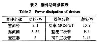 依據(jù)主要發(fā)熱元器件的損耗計(jì)算公式,得到各損耗值,將其導(dǎo)入仿真軟件;應(yīng)用Ansoft仿真軟件的內(nèi)部求解器取得實(shí)踐電路的3D發(fā)熱模型,如圖2所示。從圖中能夠明晰地看到電路內(nèi)部及各個(gè)元器件上的熱量散布狀況。依據(jù)仿真結(jié)果(圖2)可知,功率MOSFET上的熱量和變壓器的熱量最高(紅色局部),這與從電路理論上剖析求得的這兩種器件的功耗(見(jiàn)表2)相吻合。