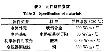 資料參數(shù):該電路中觸及的資料包括鋁合金、銅、塑料和電路基板資料-FR4。表3為元器件資料的主要參數(shù)。