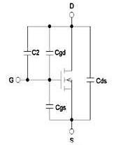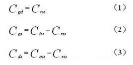 帶外接電容C2的N型MOS管極間電容等效電路MOS管的極間電容柵漏電容Cgd、柵源電容Cgs、漏源電容Cds能夠由公式確定,公式中MOS管的反應(yīng)電容Crss,輸入電容Ciss和輸出電容Coss的數(shù)值在MOS管的產(chǎn)品技術(shù)手冊(cè)上能夠查到。公式如下: