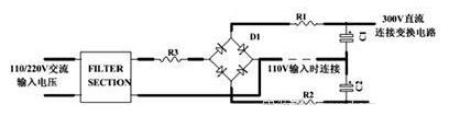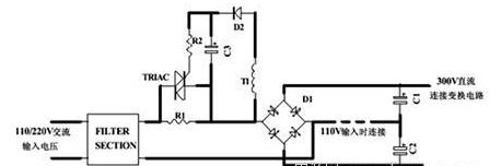 上圖所示為串聯(lián)電阻法沖擊電流操控電路(適用于橋式整流和倍壓電路,其沖擊電流相同),關(guān)于110V、220V雙電壓輸入電路,應(yīng)該在R1和R2方位放兩個(gè)電阻,這樣在110V輸入銜接線銜接時(shí)和220V輸入銜接線斷開(kāi)時(shí)的沖擊電流相同大。關(guān)于單輸入電壓電路,應(yīng)該在R3方位放電阻。