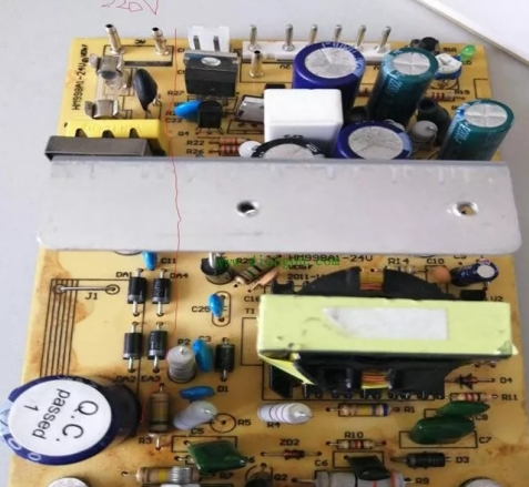 開關(guān)電源實際上是由交流、直流、交流、直流改換的過程,是將220V交流電通過整流濾波后變成300V直流電,再通過開關(guān)變壓器的儲能電感、開關(guān)管將直流電壓改換成多種電壓等級的交流電壓,再整流濾波后變成直流電壓輸出驅(qū)動負(fù)載正常作業(yè)。下圖是一個開關(guān)電源,輸出5V、12V、24V。